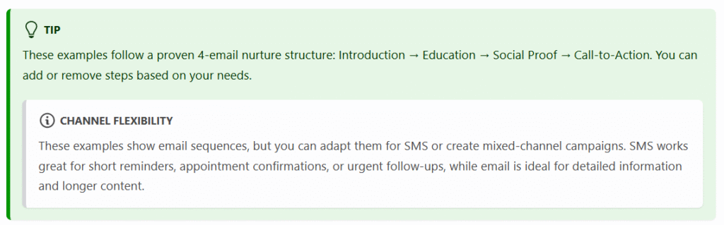 Get started quickly with these proven email sequences. Use the examples below as a starting point, then customize the messaging, timing, and calls-to-action to match your brand and business goals.