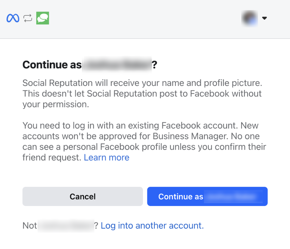In the pop-up, log in to your Facebook account and click Continue as [Your Name] to allow access.Connect Your Business Account