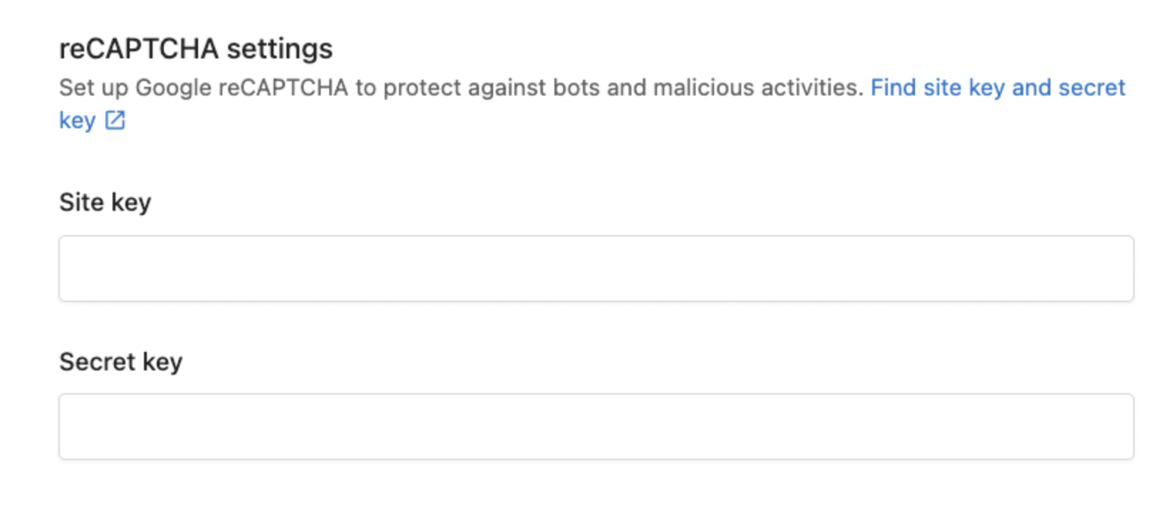 In the form builder, under Settings, use the reCAPTCHA section. After generating the site key and secret key, setup completes automatically (this can take a few minutes).