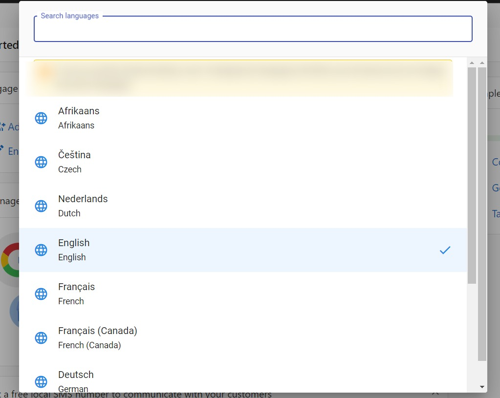 Select your preferred language from the available list.