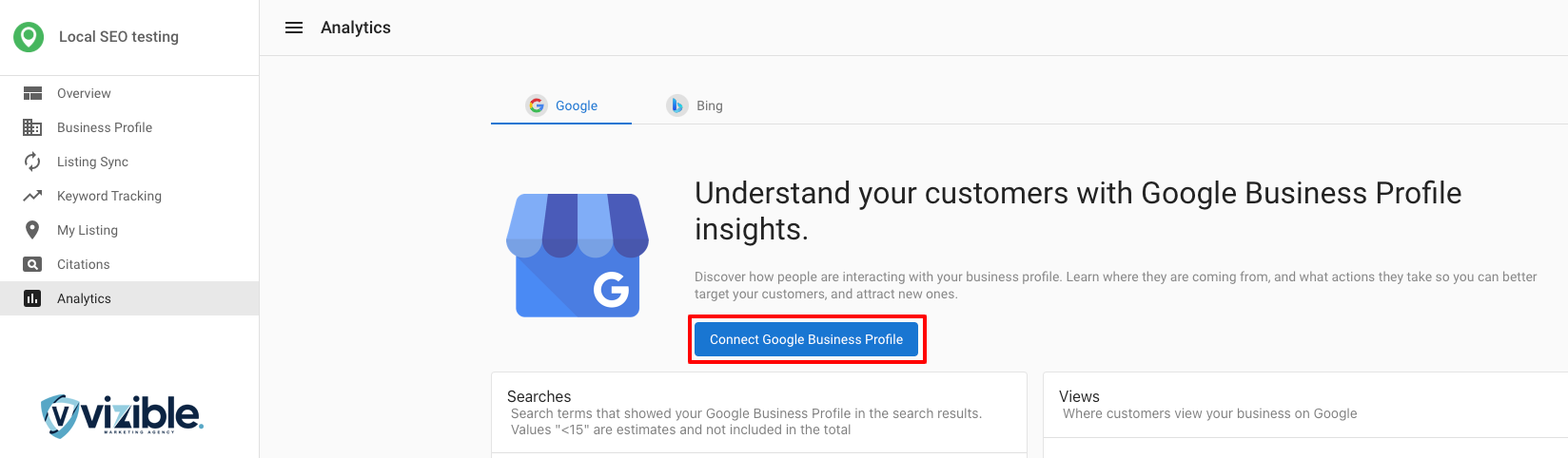 Connecting your profile allows Local SEO to pull data directly from Google’s API, ensuring you see accurate insights about how customers are finding and interacting with your business.
