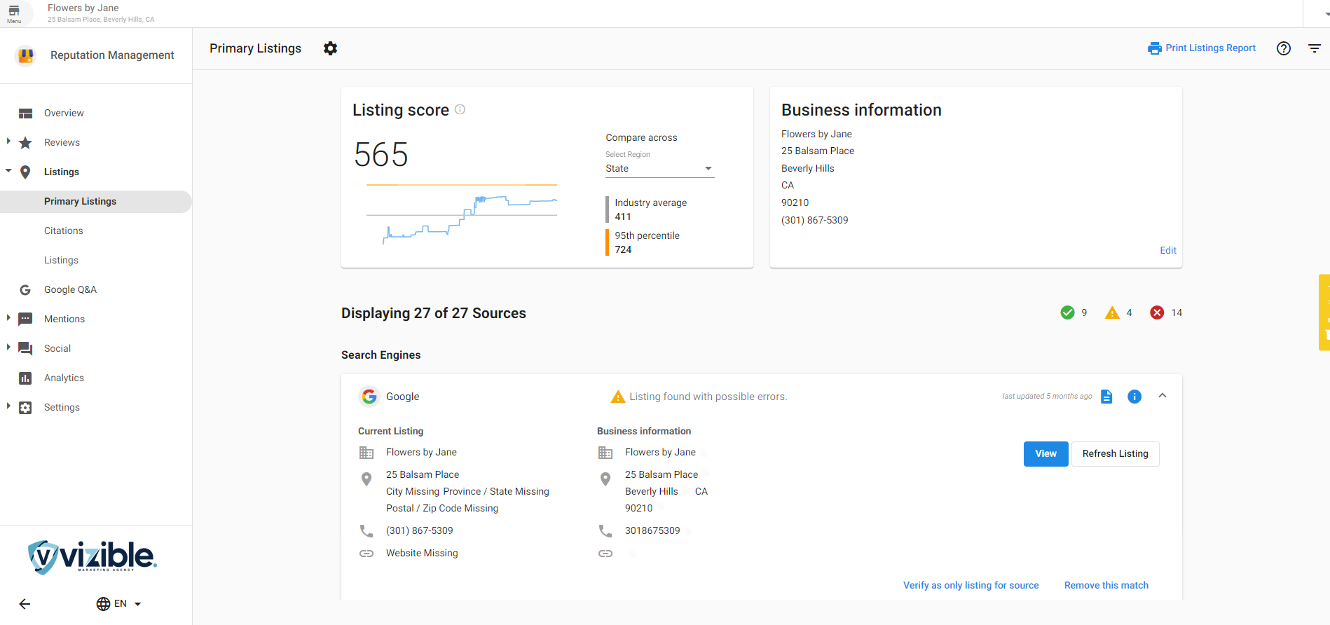 1. Go to the Listings tab of Reputation Management.